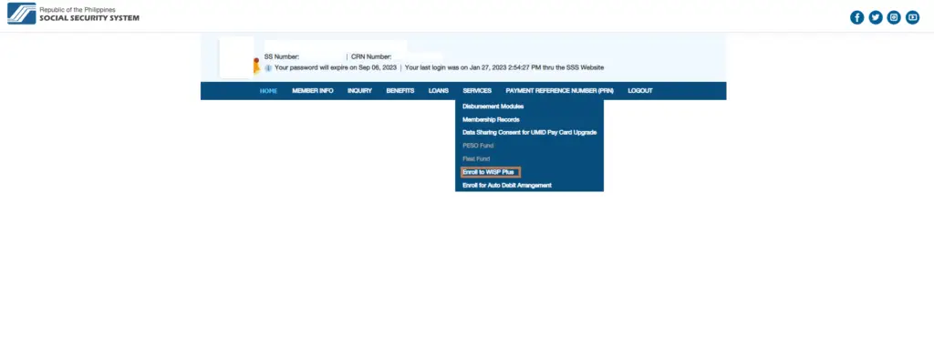 SSS members who are interested in joining WISP Plus can avail by doing it on their My.SSS Accounts online. After you log in your account credentials, from the SERVICES tab, click “Enroll to WISP Plus”