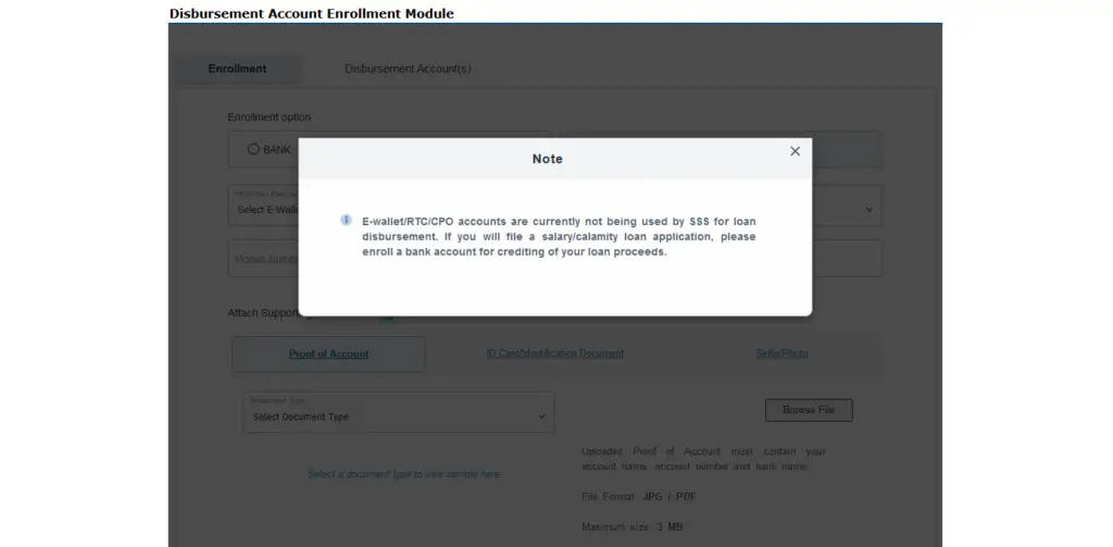Reminder as of this writing that E-Wallet/RTC/CPO accounts for loan disbursement are currently not being used by SSS and encourage you to enroll a bank account instead for crediting loan proceeds.